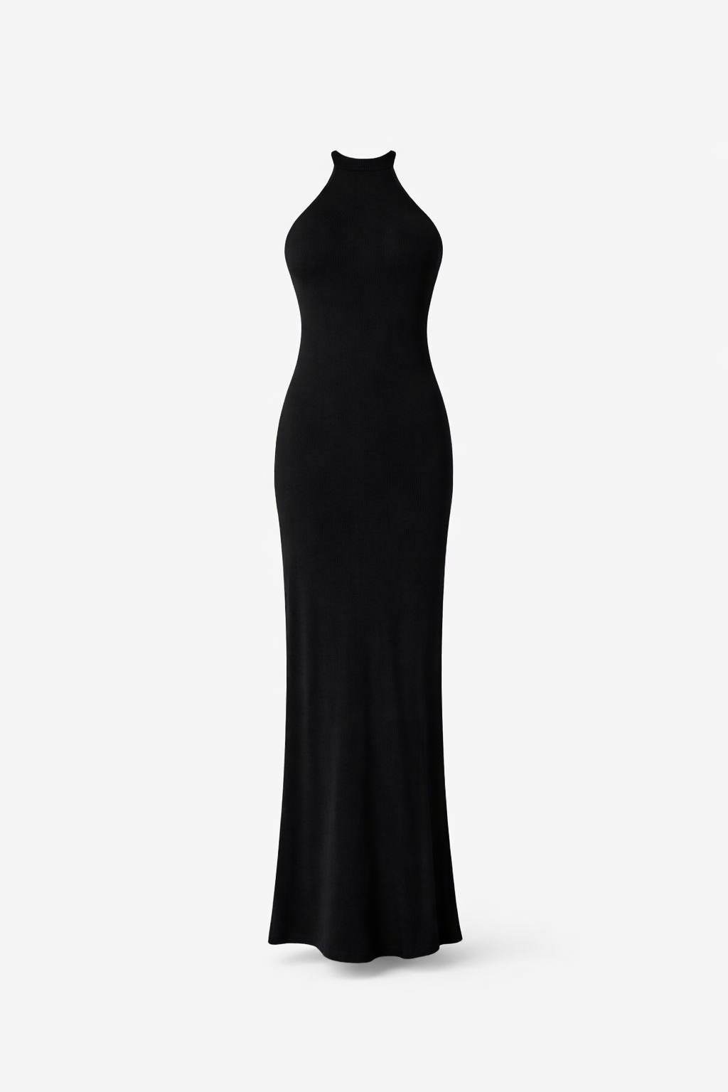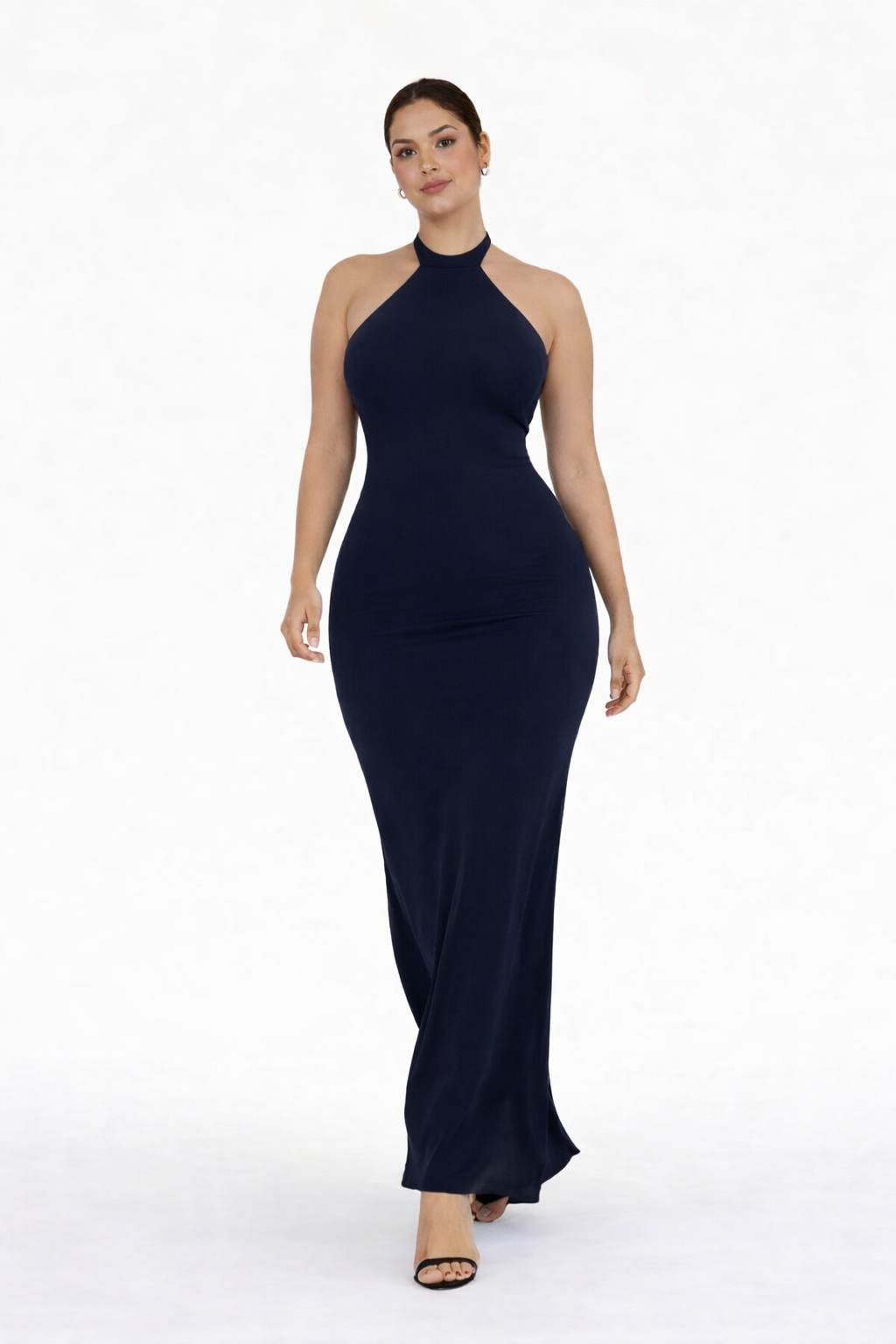 Vestido largo, cuello alto, sin mangas, de Corte ajustado a través del cuerpo, ligeramente acampanado