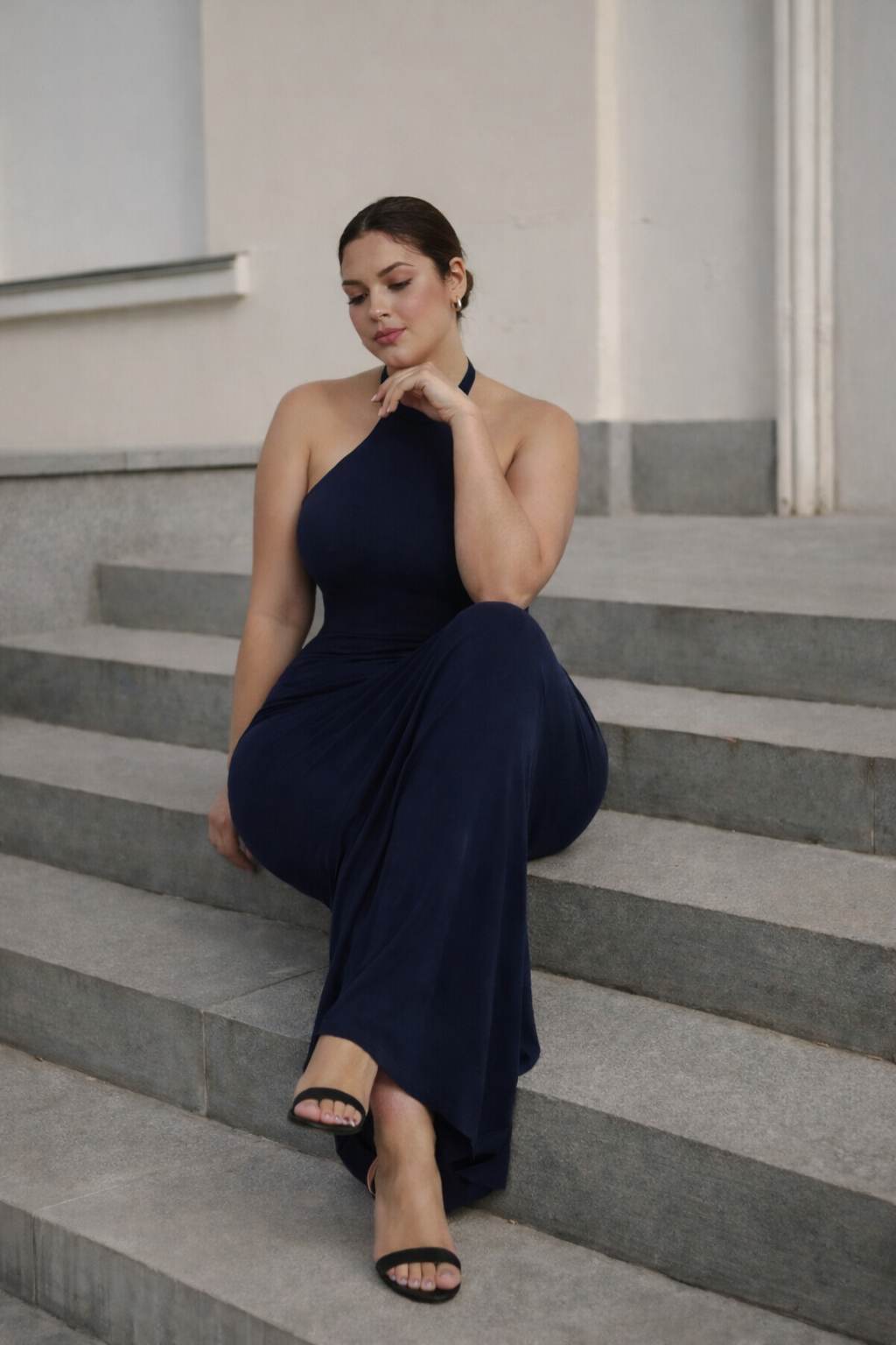 La modelo lleva una talla XL reducido en cintura. Mide 1.78 m de altura.