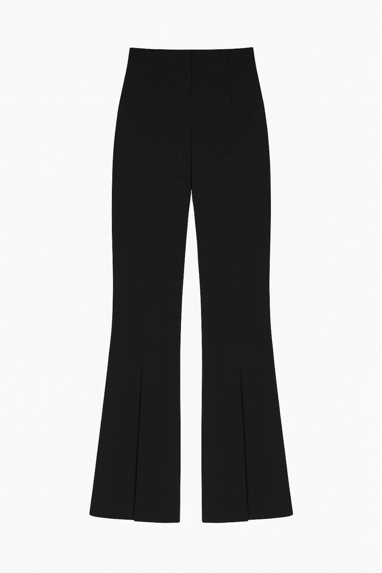 Pantalon largo tipo campana con abertura frontal